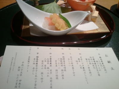 JUGEMテーマ:懐石・創作料理 仕事上のご招待で、なだ万へ ホテルのなだ万、デパートのなだ万〜と色々な店舗がありますよね。 接客、料理、その他好みもあると思いますが、ご招待いただいたことに感謝♪です 今回のメニュー そして、デザートです。 炊き込みご飯、美味しかったです(^^♪ ご馳走様でございました!!