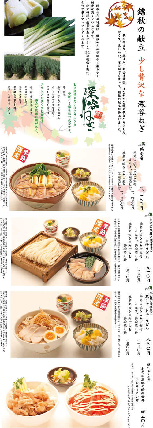 JUGEMテーマ:うどん テーマ食材は、「少し贅沢な深谷ねぎ」です 深谷ねぎの特徴は、繊維のきめが細かく柔らかく、糖度が高く甘いことです。 疲労回復に効果があるビタミン の吸収を助け、その効果をアップしてくれます。