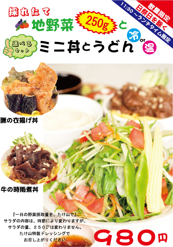 JUGEMテーマ:うどん選べるミニミニセット ¥980 選べるミニ丼、ミニうどん。でも季節の地元採れたて野菜はビッグです。 <