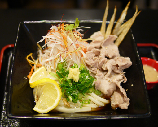 「ごくう」は、地下鉄阿波座駅10番出口から、新なにわ筋を土佐堀通り方角へ少し。やや高単価ながら、代表的メニュー、「やごろうどん 980円」をいただきました。ぶっかけタイプで、麺は熱いのか冷たいのを選べます。やごろう豚は、鹿児島県大隅半島の自然な環境で、太陽の光を目一杯浴び、のびのび健康に育てられ、オレイン酸を多く含む脂の旨味や甘みが特徴だそう。10分ほど待って、でてきました。おお、かっこい。目を引く、繊細な細カットで盛られた生野菜!レモンを搾って、好みで別途付いてくるゴマダレを使ってもよし。ヘルシー...