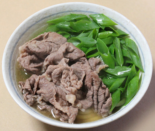 暖かいうどんなら、肉うどん!つゆで、牛肉を軽く茹で、別に湯がいたうどんと、九条ネギを合わせただけ。友人パンダちゃんに聞いた、シンプルな牛肉の味わい方。牛肉の一番美味しい食べ方のひとつだそう。ツユに浮かぶ脂が麺とからんで、牛肉のおいしさを楽しめる。上等お肉を使うつもりだったのですが、ついつい普通の切り落としを買ってしまったよ。でも、出汁、ネギと牛の旨味が充分堪能できました。美味しかった! ごちそうさま。うどんは、サンコロさんにいただいた、寒川うどん、半生タイプ。http://www.sanukisangawa.comJUGEM...