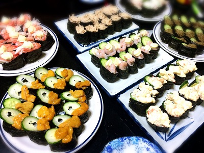 今夜はママさんと2人で軍艦巻きを 大量に作ったよー(笑) 5合分のお寿司です(ノ∀`) ご飯を18gずつ計りながら握ったので こんだけ作るのに何時間かかったか… ほんま疲れたよー(´・ω・`) 海老マヨ軍艦 海老を茹でて細かく切ってマヨで和えたよ うに軍艦 言わんでもわかるやろけどうにを乗っけただけ 本日のメインです(≧▽≦) かに味噌軍艦 これもうにと一緒で乗っけただけ メイン2号ですな(笑) 甘海老軍艦 尻尾を取った甘海老を2つのっけて 上にマヨ...