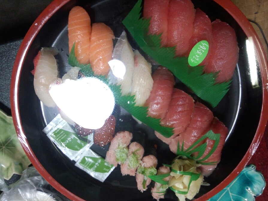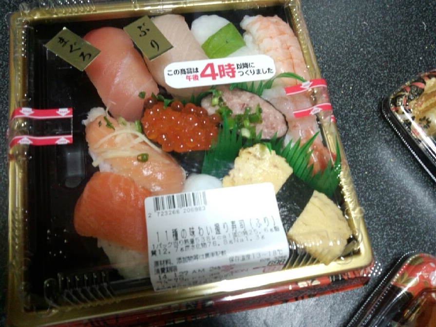 JUGEMテーマ:寿司 昨年、紹介し忘れたものに なりますが、イオンのお寿司と お惣菜はたまに買って帰ります。 握り寿司。 持って帰るときに傾いちゃって、 右に寄ってます('◇')ゞ 握りずしその2 鯖寿司。 助六寿司。 どれも美味しかったですよ。 イオンにはこのほか、 はみ出し寿司や 手まり寿司などもあり、 バリエーションが豊富です(*'ω'*)〈銀座久兵衛〉寿司海苔・〈放香堂〉銘茶詰合せ