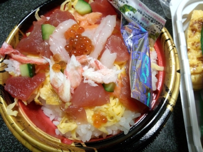 JUGEMテーマ:寿司今日午後、7時過ぎに清水屋春日井店に行ったら、いろいろ半額になっていました。(^o^)♫子供にはカツ丼半額250円を買いました。冷凍食品も半額で、大阪王将の餃子398円が半額だったので買ってみました。帰ってから作ったら美味しかったみたいで子供がよく食べていました。私はちらし寿司とおかずセットをそれぞれ半額で買いました。刺身ののったちらし寿司。これで、半額212円。お魚が新鮮で、美味しかったです(^_^)vおかずセットも半額で199円。フライは蟹爪フライです。好きなものばかり(*^_^*)チラシもおかず...