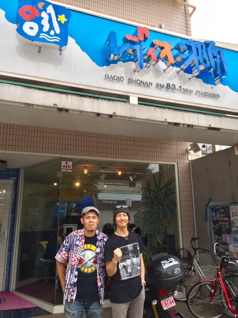 JUGEMテーマ:先日大将ローカルレディオに出演させていただきましテン。 「83.1 レディオ湘南」デッス!!プリプリのドラマーの人やチューブの人の番組もありんすヨ。 右の人がパーソナリティのシンガーソングライター八木愛介クン。 毎週土曜日23時〜24時(大将のON AIRは19日チェキラっ!!) 「八木愛介 命の音」って番組で小一時間タップリ喋りたおしましたワ。 好きな曲を掛けてくれるってんで、ツェッペリンとガンズを掛けてもらいましたゼィ。 気合い入れてこのTシャツを着てってロックと寿司の...