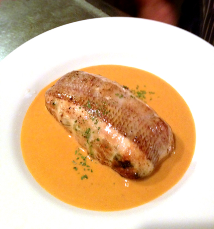 JUGEMテーマ:フランス料理 ある日のオススメメニュー 「鯛と野菜のクレピーヌ アメリケーヌソース」 天然鯛で野菜を包み、 それをクレピネット(網脂)で巻き ポワレしました ソースはアメリケーヌソース。 オマールエビの、香り、旨味、たっぷりです 又、別の日には ホタテ、海老のムース入り 「天然鯛のカツレツ」や 「スズキのシャンピニオンデュクセル詰め」 ※シャンピニオンデュクセルとは マッシュルームをペースト状にしたもの など、このソースで...