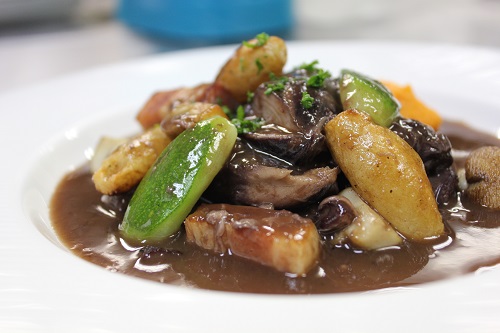 JUGEMテーマ:フランス料理こんばんは。雨ですね、寒いです。明日はいいお天気だそうです。 コッコウバンです。鳥のもも肉を骨ごと赤ワインと野菜の煮汁だけで煮込みます。ガロ煮はヅッキーニ・じゃが芋を揚げたもの・ニンジン・ニンジンのピューレ後はマッシュルーム(シャンピニヨン)です。フランス料理の中では一番古典的な料理です。魚料理は前回お出ししたグラタンです。前は鱸と魚介類だったのですが今回は目鯛とお野菜になってます。グラタンと言うとどうしてもベシャメルソースを想像しますがこれは、魚のだし「ヒューメ...