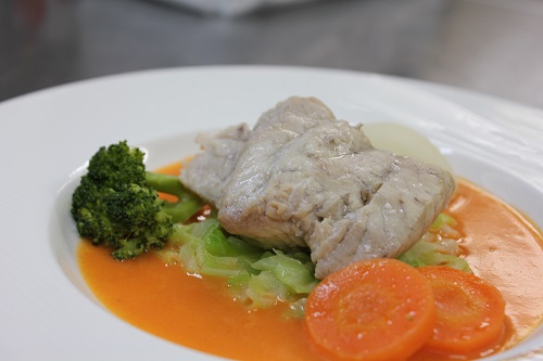 こんばんは。今日は少し早い時間。来週からのメニューが決まりました。ご紹介します。お魚料理鱸の蒸し煮、赤ピーマンのソース赤ピーマンですけどピーマン臭くない。パプリカですので、ほんのり甘い感じがします。お肉りょり若鳥胸肉のポワレ ノルマンディー風、洋梨入りのヴィガラードソース添え胸肉は何度か使った食材ですがこれはまた一味違います。洋ナシの風味が感じられ、アクセントにレモンとショウガを入れたソースです。クルトンの香ばしさとお肉の下のクスクスがベストマッチです。 牛肉のシャリアピンステーキと、牛ヒレ肉...