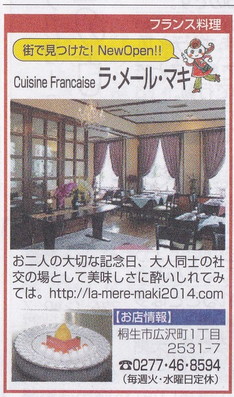 こんばんは。 今日は風の強い日でした。旗が心配だったけど、吹っ飛ぶことも無くやり過ごしました。 ここの所、足の調子が今一でモワモワしてます。 階段のある生活を今までしていなかった事もあり、結構来てるな、、、とは思っていました。 ムッシュも同じで足が上がんない、なんて言ってます。筋肉よ早く付け! 昨日のわたらせタウン紙に乗せていただきました。皆さんの勧めで試しになどと考え、やって見ました。 反響は、ホームページにアクセスが増えて、「わたらせ見てきたよ」というお客様がいらっしゃいました。 なん...
