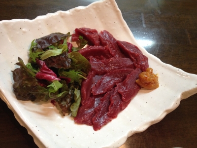 最近めっきりバルブームですが、住吉にもあるんですよ〜。 その名も「ちょっとフレンチ ヨっちゃん」。 カウンター席オンリーで、この夜はおひとり様ばかりでした。 まずはビールに馬刺し(600円くらい)。 ニンニク味噌or醤油でいただきます。 新鮮で肉の甘みがあってうまい〜。 キャベツがとろとろ6時間煮込み ロールキャベツ(800円)。 ほんっとにとろとろ。ソースもマッシュポテトもGOOD! 一緒に頼んだガーリックトースト(400円)とよくあう〜。 パリパリピザ(700円)。 中央はふっくら、外側はパリパリ...