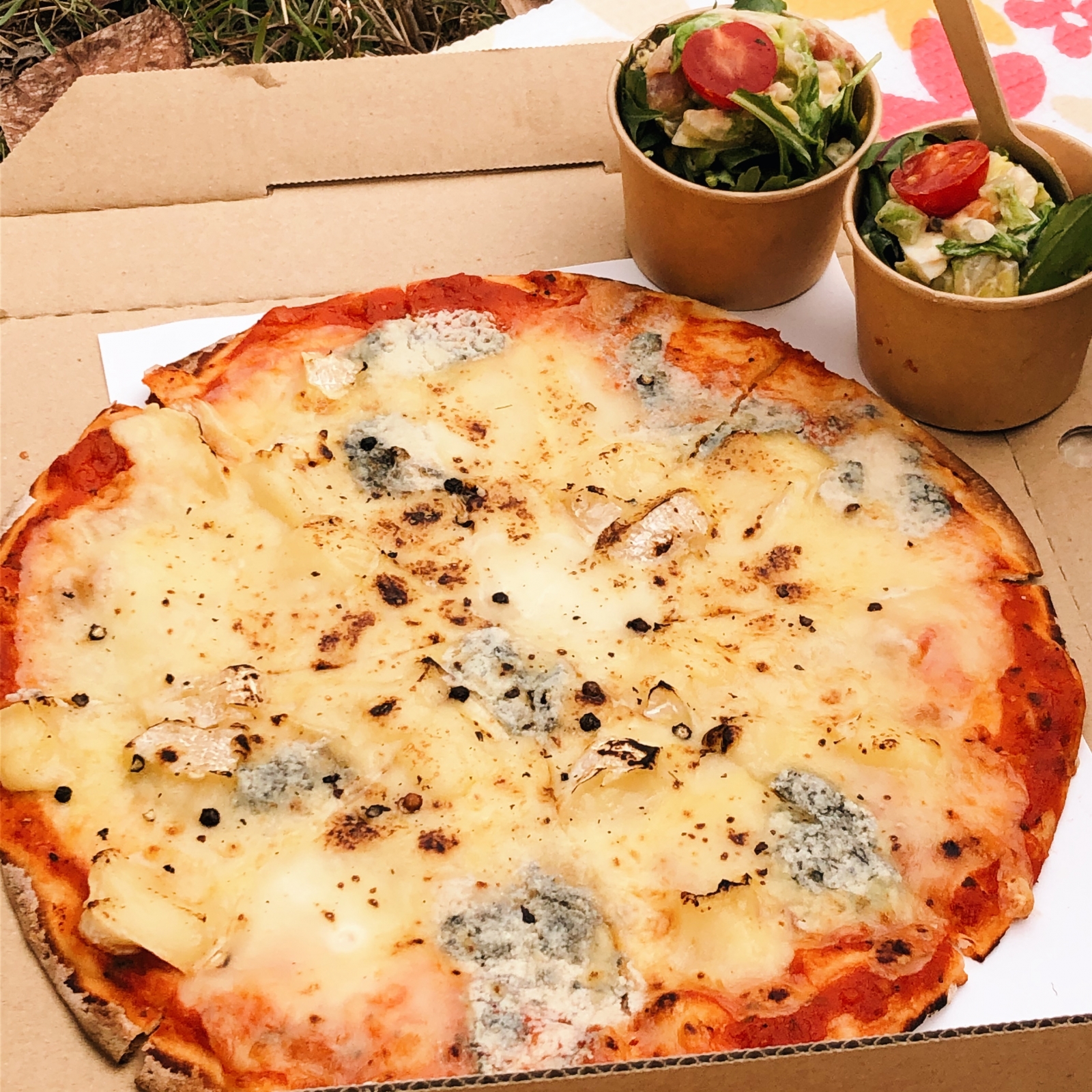 昨日の休日は、鶴見区のBiaNca(ビアンカ)でピザをテイクアウト。 写真は「4種のチーズピッツァ クワトロ・フォルマッジ」です。