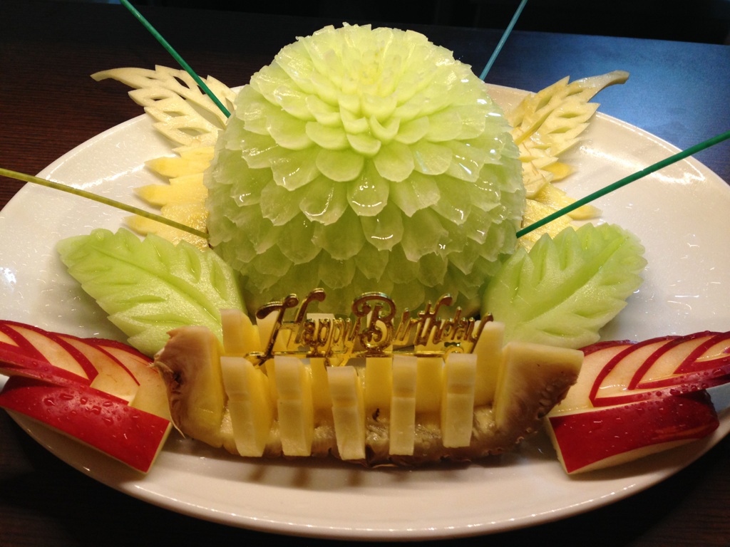 サワディカ〜♪ 今週は晴れた日が多くて嬉しいですね。 ランチバイキングも通常通り始まってます。 天気がいいので忙しくなりそうな予感♡ 今のところはゆっくりスタートしてますが・・・ ご来店はお早目に。 本日、フルーツカーヴィングのご予約頂いてまして作成中です☆ 仕上がりは又、後日UPしますね。 See daeng 0783217070