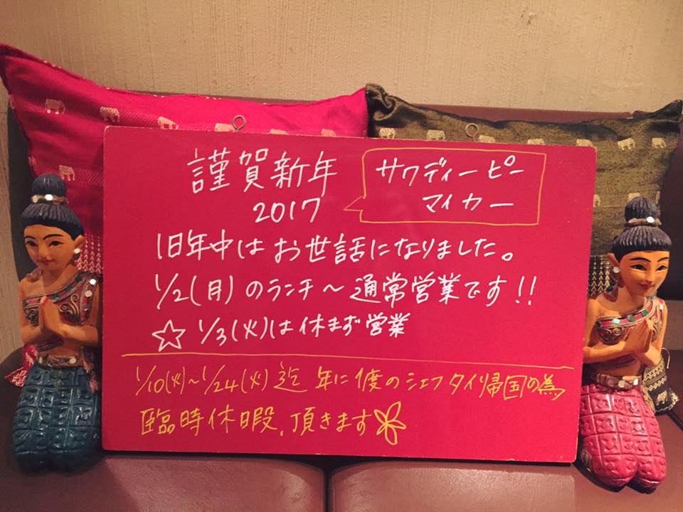 年末年始の火曜は休まず営業します!!! 宜しくお願いします♡ See Daeng ☎ 0783217070