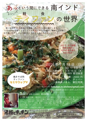 体力がびっくりするほどないのに、 告知が続いているということは企画も続いています(笑) さて、9月の黒板とキッチンのカレー講座はティファン。 それもアッと言う間にできるティファンです。 ティファンというのは朝や夕方に食べる軽食ですが、 10時間以上発酵させて作るものから、ちゃっちゃっと作れるものまで、 種類も味も幅広くあります。 その中でも初心者でも簡単にできて、 冷蔵庫の中がキレイになり、 なおかつ消化も楽ないいことづくしの品をチョイスします。 ...