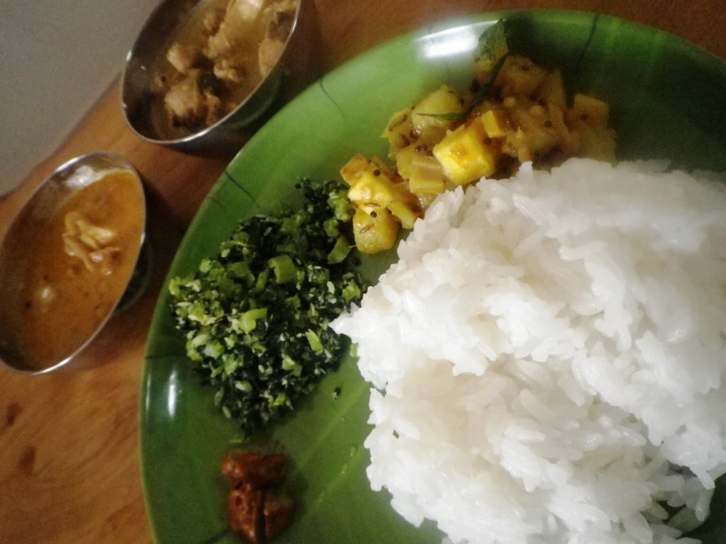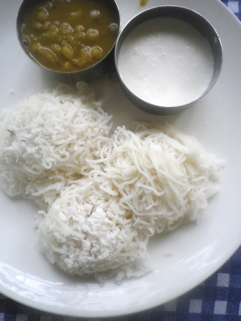 暑さが少し和らぎ、 真夏で元気をなくしていたカレーリーフは復活しました。 新しい芽が出てきたのが嬉しいです。 前回に引き続き、ケララの朝ごはんを紹介します。 (ケララの朝ごはん前編はコチラ) こちらはイディヤッパム。 米粉とココナッツから出来ている蒸し麺。 イディヤッパムを押し出す機械を使って、麺にします。 idyappam, green pea curry, coconuts milk iddiyappam, vegetable kurma, green banana イディヤッパムの材料にもココナッツが入っていますが、 シンプルにココナッツミルクにちょっと砂...