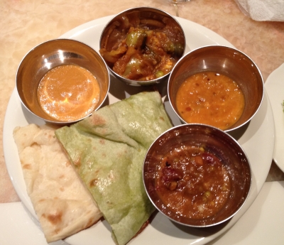 ベジタリアンの知人が愛する「ナタラジ」。ついに行ってきました。 女ひとり、平日ランチ、しかもブッフェ! ナン、ライス、日替わりカレー4種、サラダ、デザート、コーヒー を食べ放題で1,100円ぽっきり。 種類は決して多くはないけど、いい値段の店なのでおトクかと。 今日のカレーは 左から、揚げなすの甘いカレー、ベジタブル、豆のスープ系、いろいろな豆。 どれも肉や魚は入ってない。 でもけして淡泊じゃなく想像以上に濃くおいしくびっくり。 甘...