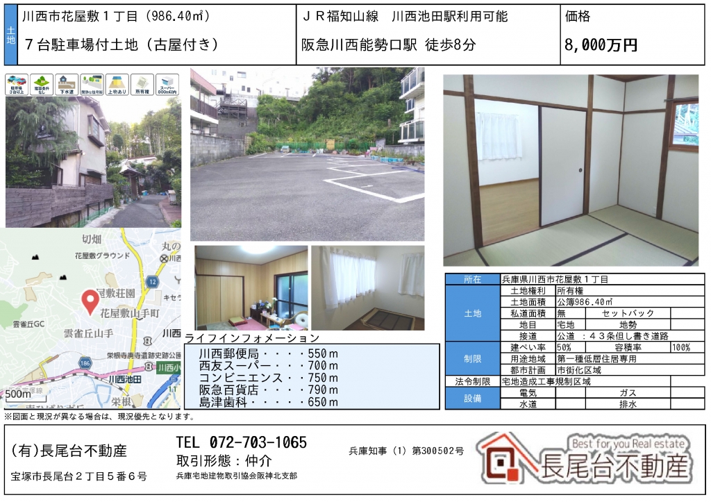 JUGEMテーマ:夢のマイホーム計画 JUGEMテーマ:不動産屋さん JUGEMテーマ:カフェ・喫茶店 【隠れ家レストラン経営いかがですか?】 今日は不動産屋らしい情報で 物件紹介を書き込みたいと思います 場所は兵庫県川西市花屋敷1丁目 最寄り駅まで徒歩圏に3路線あります JR川西池田駅・阪急川西能勢口駅 能勢電鉄・川西能勢口駅です 何と言っても注目して欲しいのは 駐車場が7台もあるんです♪ 母屋から離れまで複数棟があります ので隠れ家レス...