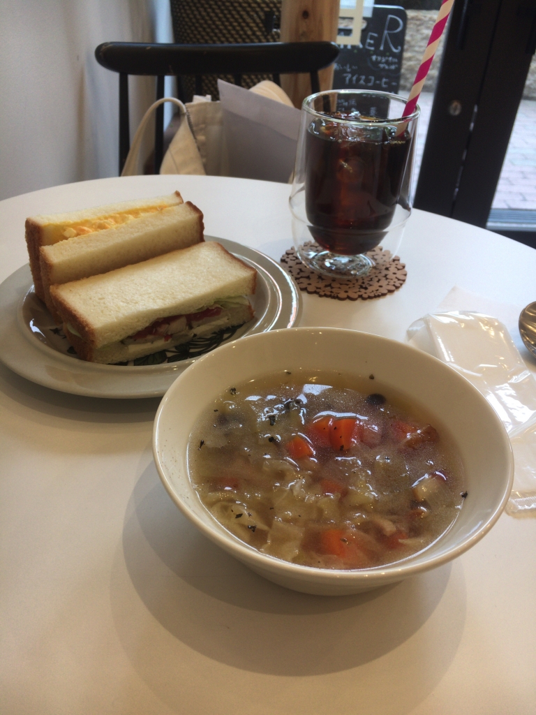 JUGEMテーマ:カフェ・喫茶店 平日限定ランチ と ランチコーヒー サンドイッチはタマゴとハーブチキンの2種 スープは野菜のコンソメスープ ズーム これでコーヒー含めて1000円いかなかったような。。。 個人経営のお店(だと思われる)でこれはすごい! 食生活が乱れに乱れて野菜を摂取していなかったので、野菜たっぷりスープの優しい味わいが胃にしみこみましたよ。。。 スコーン 外はガリッと中はモリッ...