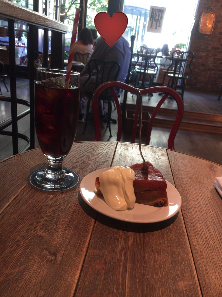 JUGEMテーマ:カフェ・喫茶店 タルトタタン と ブレンドコーヒー 食べ物に蝋燭以外のものを立てるのはなんとなく行儀が悪いというか、葬式の箸をたてたごはんごはんとか思い出してしまうおおつきさんは立派なおばちゃんかな?それでもこういうことろでケーキにフォークが突き刺さってでてきたらおしゃれに見えるんだから人間って単純ですよ。雰囲気大事! ズーム ものの見事にりんご。 そうケーキの半分以上がりんご^^ りんごの主張がすごい(物理) 薄い...