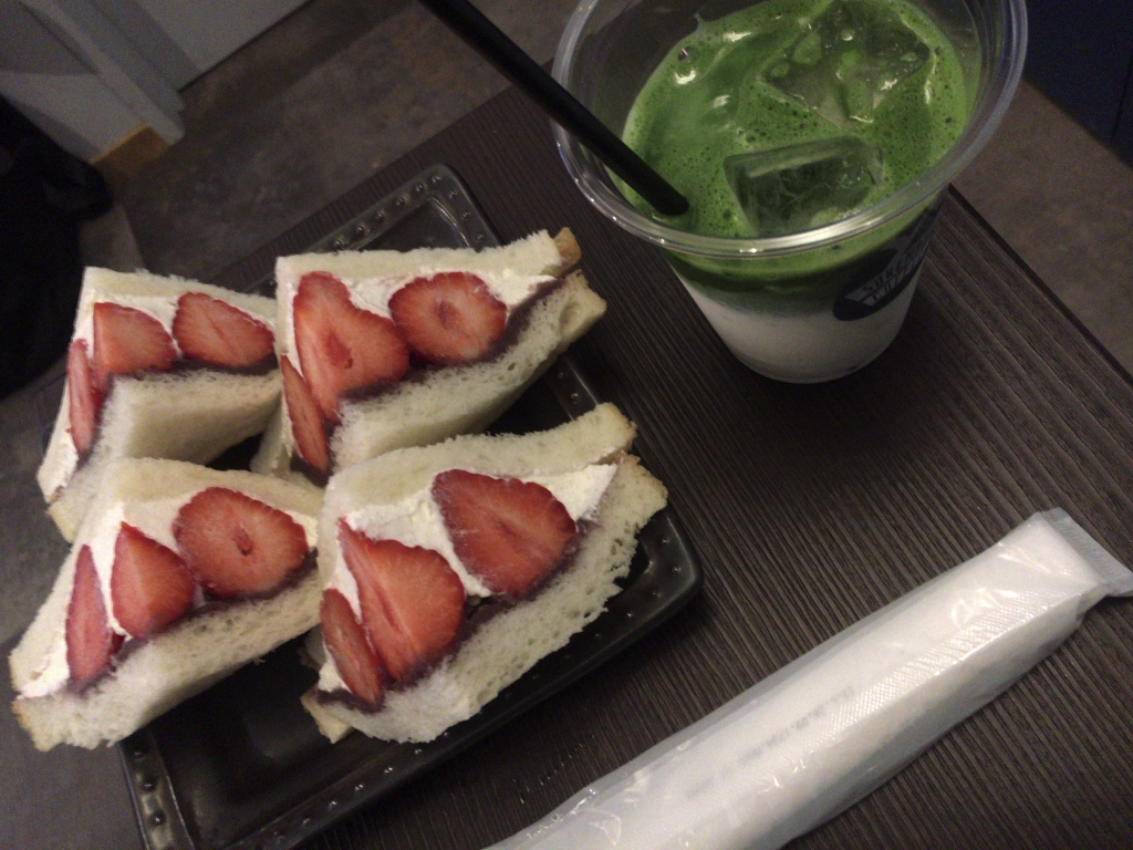 JUGEMテーマ:カフェ・喫茶店 あまおうサンド と 抹茶ラテ そこまで苺に魅力を感じていないおおつきさんだけど、こちらの餡子が入った苺サンドはちょっと食べてみたかった。 ズーム ぶれてる^^ この苺甘くて苺の風味が濃い!だけど程よく酸味もあってよき苺でした。 この程よい酸味が生クリームでマイルドにされる感じが好みですよ。 苺の風味が濃ゆいので餡子の存在はあまり感じなかったかな。 ...