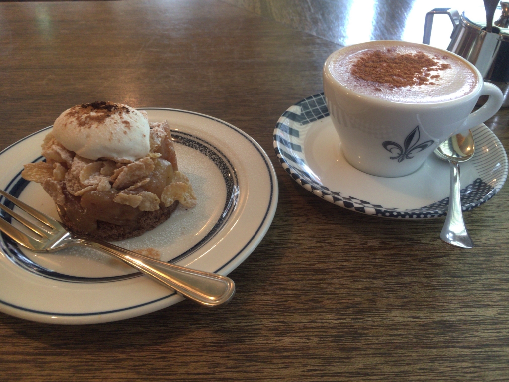 JUGEMテーマ:カフェ・喫茶店 りんごのケーキ と カプチーノ いつかプリンを食べようとおもっているのだが果たしてその日はくるのでしょうか。。。^^ ズーム ふわふわのチョコシフォン生地の上に上品に煮詰められた林檎とがりがりコーンフレーク 林檎のお上品な味わいとチープなコーンフレークっていうのが面白いけどそれが美味しいのですよ〜 今度コーンフレーク買ってきて家でがりがり食べようと心に決めました。 &nbs...