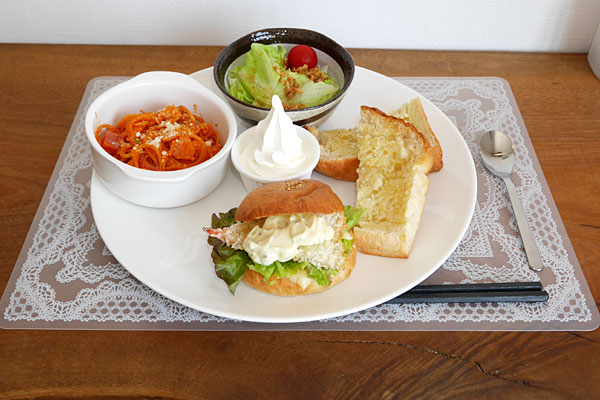 兵庫県加古川市神野町にある「かふぇ ぶらんち」です! 本日のミニバーガーは、こちらも好評のエビバーガーです うちのミニバーガー、サイズはミニに見えるけど食べるとミニじゃないと言われます 天然酵母のおかげかな 今日もぜひ食べに来てくださいね 「おてごろ ブランチ5!」の基本セット内容は ・サラダ ・天然酵母パン 2種類 ・日替りパスタ ・ミニミニソフトクリーム ・自家焙煎オーガニック珈琲(8種類から選択) (コーヒーは注文を聞いて...
