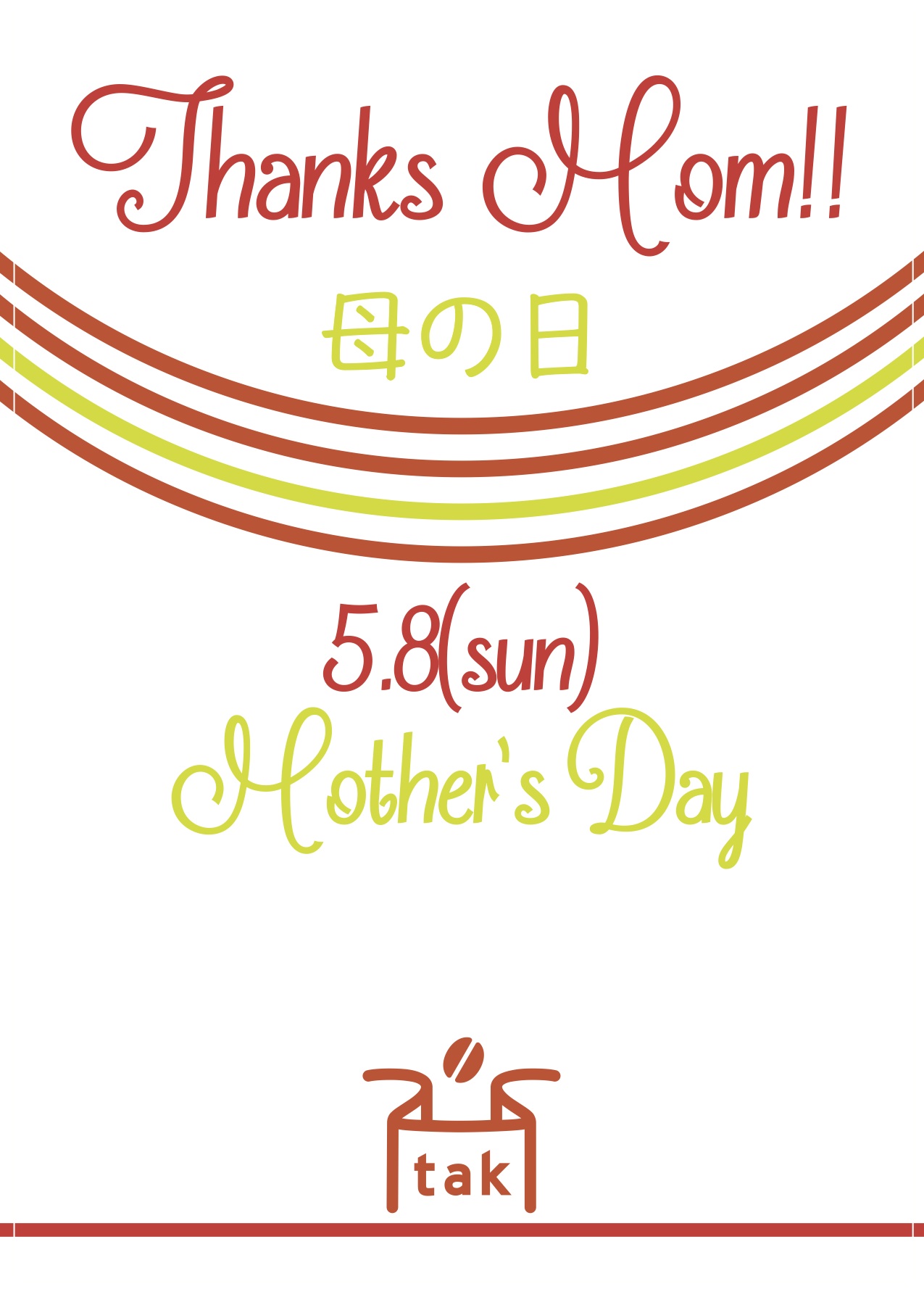おはようございます。 曇り。空気は暖かい。 昨日もご来店いただきありがとうございました。 amの花粉。pmの強風。詰んだ1日。 4月がはじまったかと思えばあっという間の下旬ですね。 皆さまGWの話題がチラホラ。 来週からですもんね。 tak beansは、GW期間は休まず営業致します。 若干営業時間の変更がございますので改めておしらせ致します。 そして、GWのそのまたちょっと先、5/8(日)は 母の日がありますね。日頃の感謝を込めるモノをお考えで あれば、是非コーヒーギフトもご検討ください。 ・一緒に住ん...
