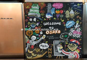新大阪駅。 JR東海 新大阪駅新幹線ラチ内店 新幹線にて移動の方が立ち寄ることが多いかと。 フラペチーノを描く くいだおれ太郎さん、大阪城、 たこ焼き、ビリケンさん、 展望塔「通天閣」、万博の「太陽の塔」、づぼらや、 力作のブラックボードが。 大阪頑張れ! 大坂なおみさんの 全米テニスオープン優勝(2018.9.9) の嬉しさに便乗して ...