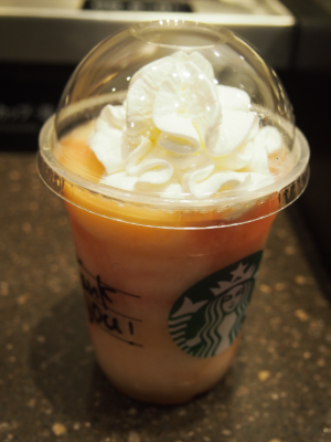 JUGEMテーマ:スターバックス 夏の限定メニューだったスタバのピーチ イン ピーチフラペチーノ。 わたしもフライボートの帰り道に飲んできたよー! 飲んだらまさにTHE☆ピーチ。 「桃を丸ごとかじったような」とネットにはあったんだけど、まさにそのまんま。 当たり前だけどピーチの味しかしない…(笑) 中には果肉がごろごろ。そして濃厚! 飲んでいるうちにスタバのフラペチーノじゃなくてピーチネクターなんじゃないかって気分になりました。笑 それにしても、久しぶりの当たりだったかもしれない! スタ...