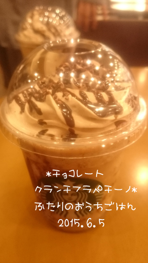 チョコレートクランチフラッペチーノ。もちろん1,000キロカロリー超えのベンティサイズ!想像以上にクランチが良い感じで美味しかった♪エスプレッソを追加☆JUGEMテーマ:スターバックス 人気ブログランキングへ ↑ 参加中です 応援クリックしていただけると 励みになりますm(__)m