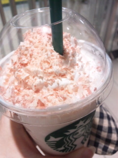 甘さ控えめだな〜!奥ゆかしい味ってやつかな?(笑) てっぺんのいちごキャンディとホイップが甘い感じ(`・ω・´) 桜味は正直「?」