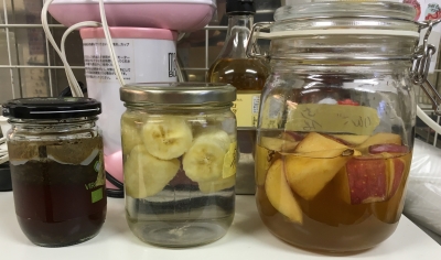JUGEMテーマ:スイーツ 体に優しいおやつ作りのために…天然酵母を… 何事もやって見ないとわからない…と言うことで自家製天然酵母を作ることにしました。 簡単なようで、面倒…ほっておくようで…温度とか細かいところが大変! 最初は…米麹で酵母を作りたかったのですが…温度や雑菌など結構難しい…2度挑戦して、2度とも失敗…多分 今回は、初心者向けの酵母に挑戦! 紅茶リーフ・バナナ・りんごの3種類を育ててます。 ちゃんと育って…! 出来...