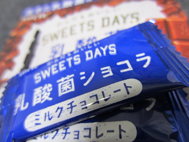 「SWEETS DAYS 乳酸菌ショコラ」 乳酸菌をチョコでくるむことで、 胃酸で死んでしまう乳酸菌が死なずに、 腸まで100倍生きて届く...との事 ロッテ製のチョコにしては高い価格設定ですが 乳酸菌とカカオポリフェノール〜何か、体によさそう〜 一口〜あれっ?予想に反して 乳酸菌の香りも味も みじんも感じない! いつもの美味しい”ガーナミルクチョコ”だ! 総カロリー308kcal、1枚22kcal しかし〜だれだけの乳酸菌が摂取出来るのか、 その乳酸菌の効能等が いっさい書いてないのがチト残念! JUGEMテーマ:...