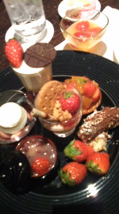 友人たちと恵比寿ウェスティンホテルのデザートブュッフェに行ってきました。 1、2月はストロベリーフェアで大人気で、予約取るの大変だった(@_@;)。 ブュッフェの他に1人にひとつ焼きたての季節限定スフレ(今回は苺のスフレ)が出てくるの♪ スフレ好きの私にはたまら〜ん\(^O^)/ キッシュとかパスタとか漬物とか、しょっぱい系も充実してるのでかわりばんこに食べてエンドレス。 もう限界です( ̄▽ ̄)。