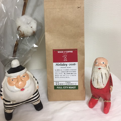 お待たせしました!! VOICE of COFFEEの、「クリスマスブレンド」が出来ました。 <名称> Holiday -2016- <容量> 100g <味の特徴> 甘い香りとフルーティな味わいになめらかさとスパイシーさを加えた華やかな中深煎りのブレンドです。 熟した果実の酸やコクもあり、フルーツケーキやシュトーレンなどにも合うブレンドになっております。 家族や大切な人と過ごす「ホリデーシーズン」にぴったりの 味わい深いブレンドです。 是非!!飲んでみてください...