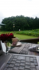 JUGEMテーマ:美味しいコーヒーを楽しむ こんにちは。 白馬村は天気予報通り、雨が上がって、曇り空です。 とーちゃん(主人)は雨が止むとすぐに草刈りを始めました。 カフェ『わんこ』&ドッグランのデッキ席 いつもアップしてるパソコンのその向こうには、草刈りをしてるとーちゃんが。とーちゃんの向こうはドッグラン、手前は無農薬畑です。カフェ『わんこ』の野菜類はなるべくこの無農薬畑で、注文を受けてから採り、氷水で冷やしてテーブルへ。 蝶々 今年は蝶が多くみられます。紫色の蝶...