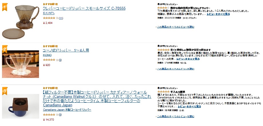 木製コーヒードリッパー カナディアーノ(Canadiano)が、 Amazonのコーヒードリッパーランキング で現在おすすめ第3位にランクされています! ありがとうございます! JUGEMテーマ:美味しいコーヒーを楽しむ