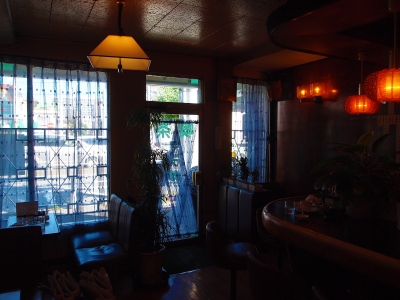 かつて土曜日に喫茶巡りをしていたときに出会って、入れないでいた土曜日休みの喫茶ドラゴン。 念願叶って入ってみたら、外観から期待した通りの素晴らしい内装でした。 半地下コーナー。 白いカーテンも水玉模様でかわいい。 サイケデリックな柄が素敵なインパクトの棚。 なぜドラゴンなのか?父が作ったお店なのでわからない。内装のことも何にも知らない。とママさん...