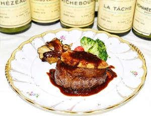 牛腿肉のステーキ ロッシーニ風 本来はトゥルヌド・ロッシーニと言いまして、フィレ肉を使いトリュフを加えるのですが、フィレの入荷なく腿肉で、またトリュフがないので乾燥ポルチーニを戻して使っています。 [1] ソース・ポートの準備 乾燥ポルチーニ 5カケを湯で戻しておきます コニャック 100ml、ルビーポート 100mlを火にかけフランベします アルコールが飛んだら弱火で1/4まで煮詰めます ポルチーニの戻し汁をペーパータオルで越して加え、ブイヨン 100ml を加え、1/2まで煮詰めます 戻したポルチーニのうち、...
