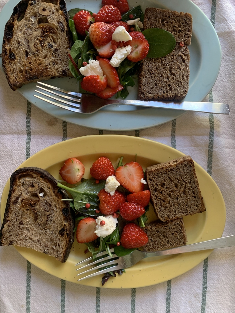 I often eat strawberry salad this time of year. It's easy to make. First, pour some oil and vinegar into a bowl, add a pinch of salt and sugar, and stir well. Then add some baby leaves and mix well. Place the leaves onto a plate and top with halved strawberries and ricotta cheese. It's a salad that feels springlike. Please try it! JUGEMテーマ:家庭料理のレシピ