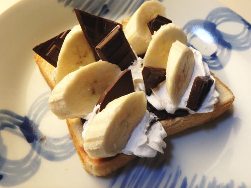 JUGEMテーマ:家庭料理のレシピ <作り方> バナナはスライス、板チョコは手で割ってください。 トーストした食パンに、あんこをぬったら、上からホイップを絞ってください。 その上からバナナを並べたら、割れチョコをトッピングして出来上がり。 焼きチョコとはまた違った美味しさを発見しました。 バレンタインのチョコレートを処理したわけですが、 あっという間に消費して助かりました。 また板チョコを購入したいと思います。 詳しい材料はサイトに...