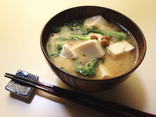 JUGEMテーマ:家庭料理のレシピ 写真は春菊とお豆腐と納豆のみそ汁です! <材料:2人前> 水 400ml 出汁の素 小さじ1 みそ 大さじ2 春菊 1/3束 お豆腐 150g 納豆 1パック 納豆の美味しいお味噌汁、作り方はサイトにて! 「椀物の世界」 http://gorakku.moo.jp/miso/ どうぞよろしく!