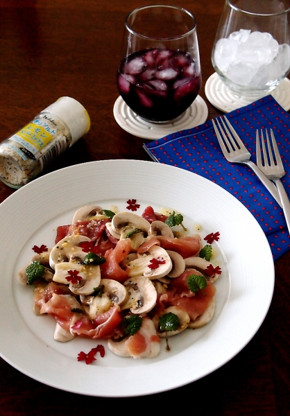 ●今日の1品● 〈スパイスで美味しい減塩・・マッシュルームのカルパッチョ♪〉 嬉しいハウス様の嬉しいスパイスモニター、第2弾♪ ハウス香りソルト/レモンペパーミックス・・爽やかなレモンの香りに、 ブラックペパー・ガーリック・パセリ・カルダモンなどのハーブ類が、バランス良くブレンドされてます。 この手のものって塩気が強くて???な印象ですが、すぱっと払拭してくれます♪ お見事! そんなレモンペパーミックスを使って、簡単で萌えな1品♪ マッシュル...