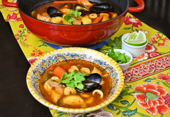 こんにちは!5月5日日本では端午の節句 こどもの日でもメキシコ人系の移民が多いアメリカではCinco de Mayo のお祝いをします。簡単に言えばこの日はメキシコ軍がフランス軍を撃退した日です。話によると本国メキシコでよりもアメリカでのほうが 盛大にお祝いされるのだそうです。マルガリータで乾杯してタコスや サルサチップでお祝いだ〜、と言いたいところですが、我が家ではわたしが 1番好きなスープ!と大声で言えるスープSoup of the Seven Seas (Caldo de Siete Mares)でお祝いです。7種の海鮮スープ という意味で...