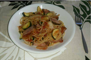 JUGEMテーマ:宅呑み・一人ご飯に!簡単レシピ♪ 第三弾です! バルナバハムアレンジシリーズ最後です。 良い物を頂くと、色々捗りますねw ?パストラミポークのスパイシートマトパスタ <材料(2人前)> スパゲティ…80g パストラミポーク・・・50g ズッキーニ・・・半本 玉ねぎ・・・半玉 ミニトマト・・・6個 にんにく・・・1ヶ オリーブ油・・・大さじ1.5 塩コショウ・・・適量 <作り方> ?パストラミポーク・ズッキーニ・玉ねぎは大きめの一口サイズに、 ...