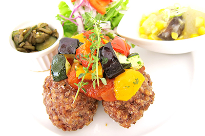 JUGEMテーマ: マクロビオティック 月のリズムプレート ¥1,000(税抜) ※表記は本体価格(税抜)となります。精算時、消費税8%が加算されます。 【Point】 上弦は心・小腸系と共鳴する時期で、この周期には心系を強化する赤色と苦味の食材、キビを用いた食事がおすすめです。今回はトマト、高きびを使用しました。 【主菜】高きびボール 野菜トマトソース 高きびは心臓の働きを助けてくれます。 【スープ】】惣兵衛米玄米麹味噌使用 きのこの味噌汁 シンプルイズベスト!きのこ出汁...
