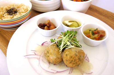 JUGEMテーマ: マクロビオティック 月のリズムプレート ¥1,000(税抜) ※表記は本体価格(税抜)となります。精算時、消費税8%が加算されます。 【Point】 満月は肺を強化する辛み食材、白色食材、玄米を食べましょう! 今回は大根、生姜、山芋、玉ねぎを使用しております。 【主菜】山芋団子 おろしソース 『ヤサイノイトウ』さんの無農薬、無化学肥料の山芋をフワフワもちもちの団子にしました。 【スープ】金時人参のポタージュ ...
