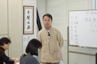 JUGEMテーマ:マクロビオティック 12月2日土曜日、正食協会の理事・岡部賢二先生の「陰陽五行による季節の養生と手当て・望診法」の第五回目(シリーズ最終回)が開催されました。今回のテーマは、「冬の養生法と望診法(腎・膀胱系)〜小豆、こんにゃく、海藻を使った手当て〜」です。講座の前半は腎・膀胱系が弱るとどのような症状が出てくるのかという自己診断、セルフチェックの方法について。後半はこんにゃく湿布の実演、小豆かぼちゃの作り方と試食が行われました。 「腎・膀胱系は、冬の寒...