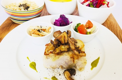 JUGEMテーマ: マクロビオティック 月のリズムプレート ¥1,000(税抜) ※表記は本体価格(税抜)となります。精算時、消費税8%が加算されます。 【Point】 新月は肝系を強化する青色(緑色)食材、麦類、乾物を食べましょう。 今回は春菊を使用してます。 【主菜】里芋のテリーヌ 2種のソース キノコ、春菊くるみの2種類のソースで召し上がれ♪ 【スープ】人参と長葱のポタージュ カラダがポカポカ温まる長葱のポタージュ。クセになりそう! 【副菜】旬の副菜3種 旬の食材を利用して、月のリズムに...