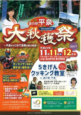 台風が接近しているため、岩手県花巻市も今日は雨模様のお天気です しかし!そんな雨にもマケズ、11月のキッチンカー出店のお知らせです 新しくできた道の駅平泉にて大きなイベントが開催されます! 農産物の販売や、キッチンカーでの食べ物の販売、伝統工芸品の販売など、 楽しく食べ歩きをしながらお買い物も出来ちゃいそうなイベント 5きげんクッキング教室や、ガンライザーNEOの握手会、平泉のゆるキャラ「けろ平」との握手会などなど、 お子様から大人まで、一日中ずったり楽しめそうな催し物も目...